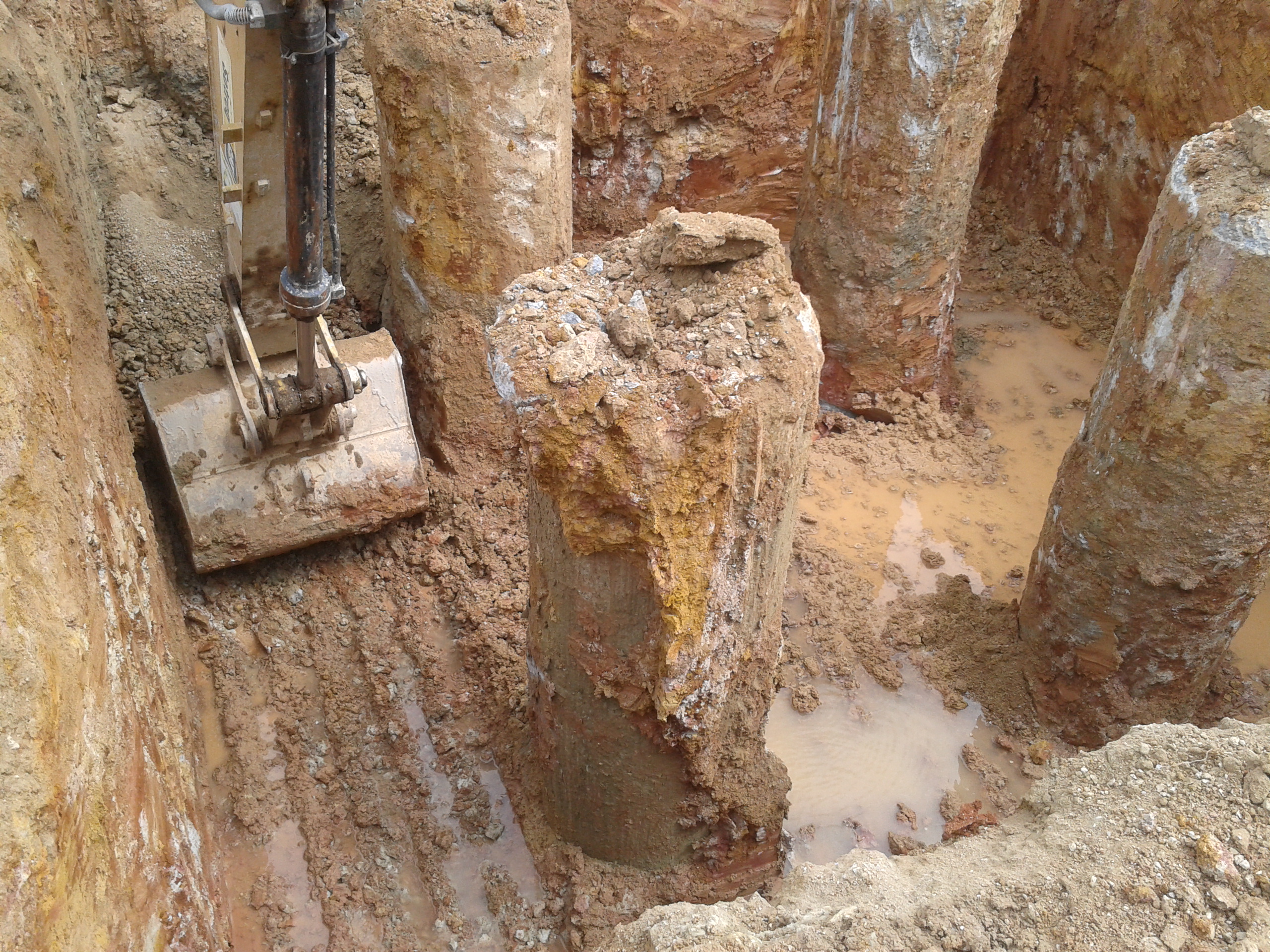 - Fundações Profundas – Fundações profundas são elementos estruturais de fundação que usam a atrito lateral gerado entre a estaca e o solo para transferir as cargas provenientes da edificação para o solo. Tem esse nome porque são fundações onde é preciso escavar um pouco mais (não existe um parâmetro mas podemos dizer que mais de 6 metros) para encontrar um solo com resistência suficiente para aguentar as cargas da estrutura. São empregadas em casos com uma carga mais pesada ou em caso de solo pouco resistente e, ao contrário da fundação rasa, normalmente tem um custo maior. São um pouco mais confiáveis já que, apesar de a sondagem não conseguir mapear todo o terreno, devido à sua grande profundidade elas conseguem mitigar o risco de alcançar um solo menos resistente. São exemplos de fundações profundas: estaca frank, estaca hélice contínua, estaca pré-moldada de concreto, entre outras.