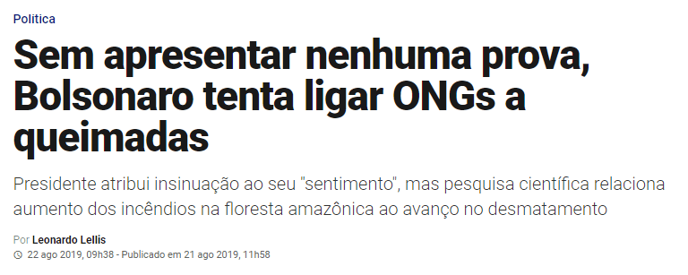 - https://veja.abril.com.br/politica/sem-apresentar-qualquer-prova-bolsonaro-tenta-ligar-ongs-a-queimadas/