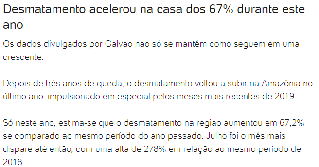 - https://noticias.uol.com.br/confere/ultimas-noticias/2019/08/14/desmatamento-na-amazonia-acelera-67-sob-governo-bolsonaro-em-2019.htm