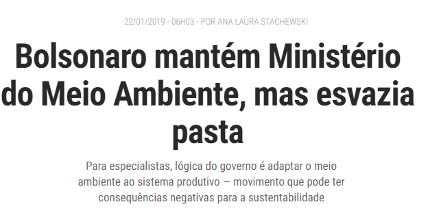 - https://epocanegocios.globo.com/Brasil/noticia/2019/01/bolsonaro-mantem-ministerio-do-meio-ambiente-mas-esvazia-pasta.html